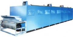 ★物料由加料器均匀地铺在网带上,网带一般采用12-60目不锈钢丝网,由传动装置拖动在干燥机内移动。干燥机由若干单元组成,每一单元热风独立循环,部分尾气由专门湿风机排出,废气由调节阀控制,热气由下往上或由上往下穿过铺满物料的网带完成热量与质量传递的进程,带走物料的水份。网带缓慢移动,运行速度可根据物料温度自动调节,干燥后的成品连续落入收料器中。上下循环单元根据用户需要可灵活配备,单元数量亦可根据需要选取